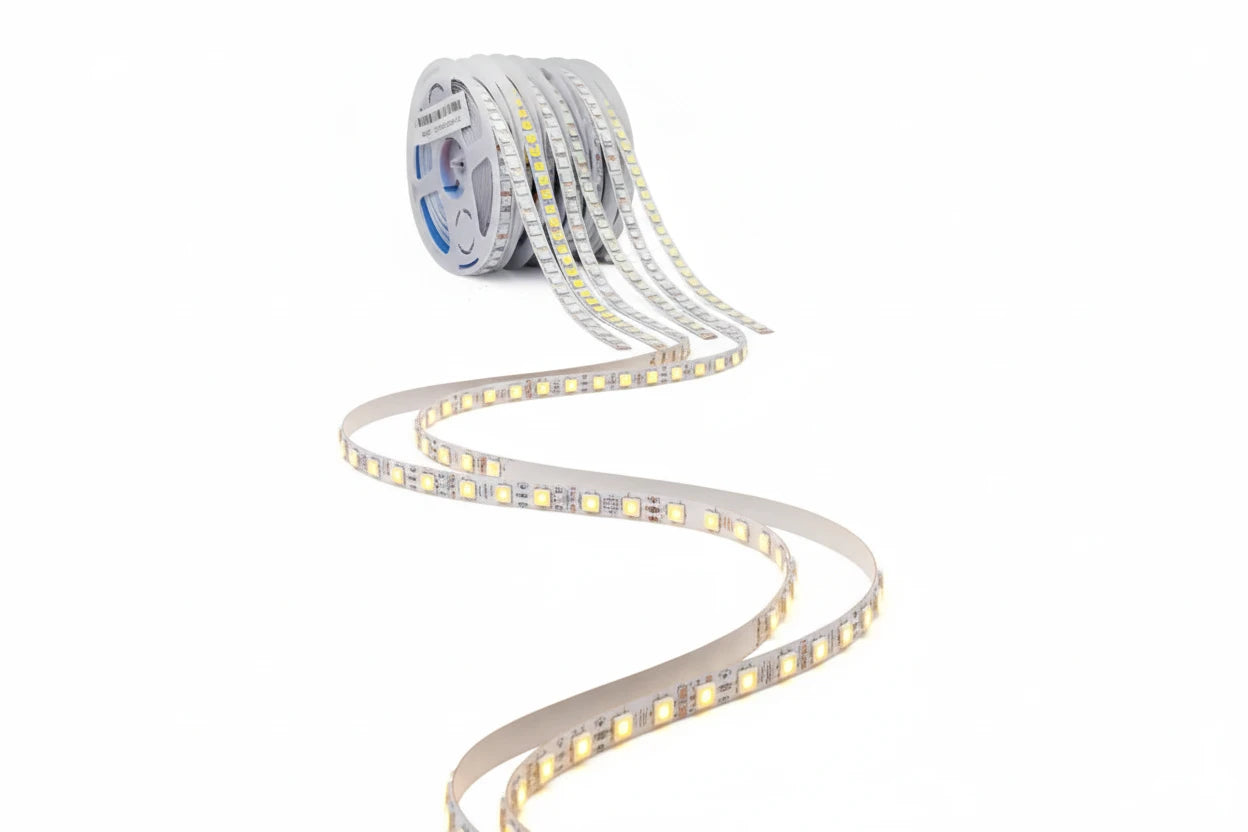 The 12V 8mm 5050 LED strip lights feature 60 LEDs per meter and come in a 5-meter length, providing versatile lighting options for various applications. With their energy efficiency, these LED strips consume significantly less power compared to traditional lighting, promoting sustainability. Their wide color range allows for customizable ambient lighting solutions, enhancing any environment.