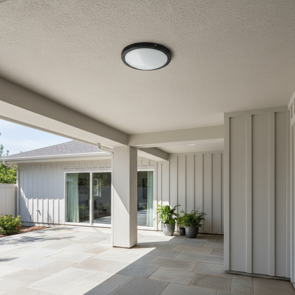 This 18W waterproof fixture provides durable lighting for outdoor or bathroom use. With a high impact Polycarbonate lens and flush mount design, it is both functional and aesthetically pleasing. The conductor can be inserted four ways, making installation easier. Featuring a sleek black trim and opal lens for a modern look.
