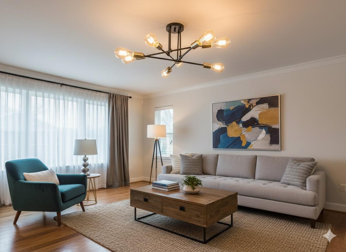Elevate your space with the 8-Light Black and Gold Sputnik Semi-Mount Ceiling Light, featuring an E27 base for versatile bulb options. Its bold black finish combined with gold accents offers a sophisticated mid-century modern aesthetic, while the semi-mount design ensures optimal illumination with a stylish statement. Perfect for living rooms, dining areas, or offices, this fixture balances form and function seamlessly.