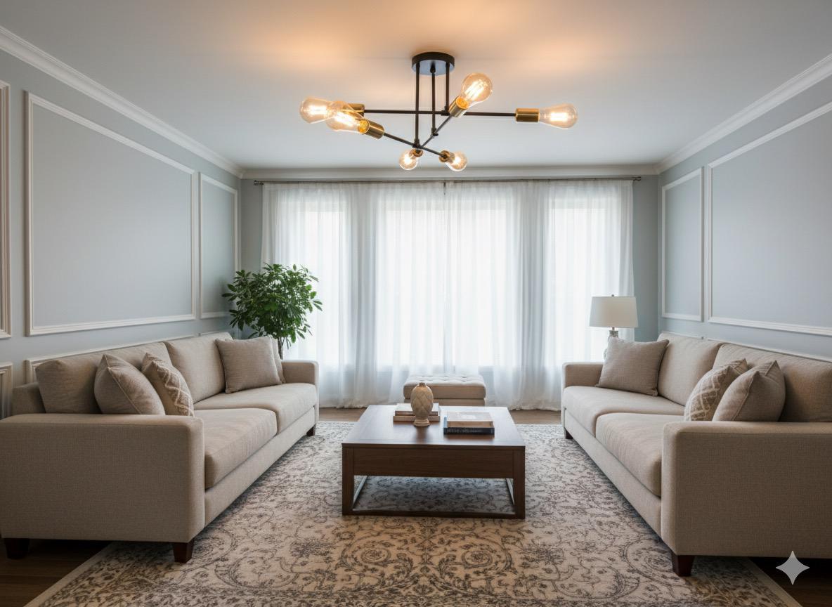 Elevate your space with the 6-Light Black and Gold Sputnik Semi-Mount Ceiling Light, featuring an E27 base for versatile bulb options. Its bold black finish combined with gold accents offers a sophisticated mid-century modern aesthetic, while the semi-mount design ensures optimal illumination with a stylish statement. Perfect for living rooms, dining areas, or offices, this fixture balances form and function seamlessly.